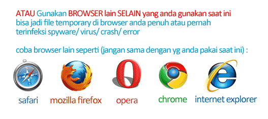 Gunakan BROWSER LAIN : Internet Explorer (IE) / Chrome / Opera/ Mozilla / Safari